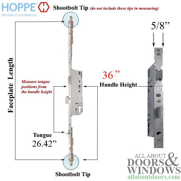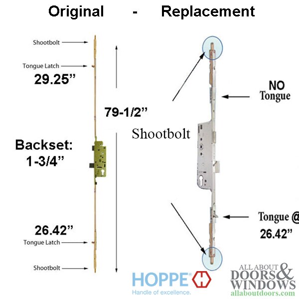 Replacement Multipoint lock for 79-1/2 inch 5-point tongue with shootbolts.