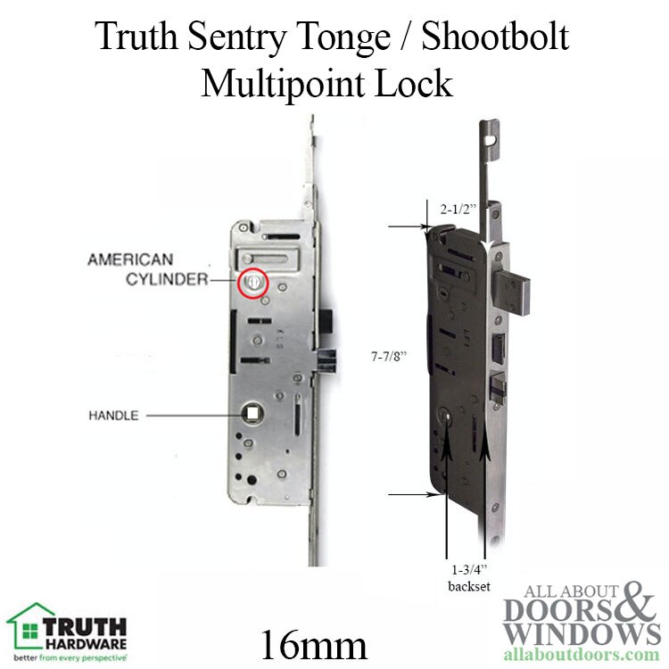 Truth Sentry Active Multipoint Lock, 5/8 inch faceplate, 1-3/4 inch Backset, Shootbolt with Tongue @ 20"