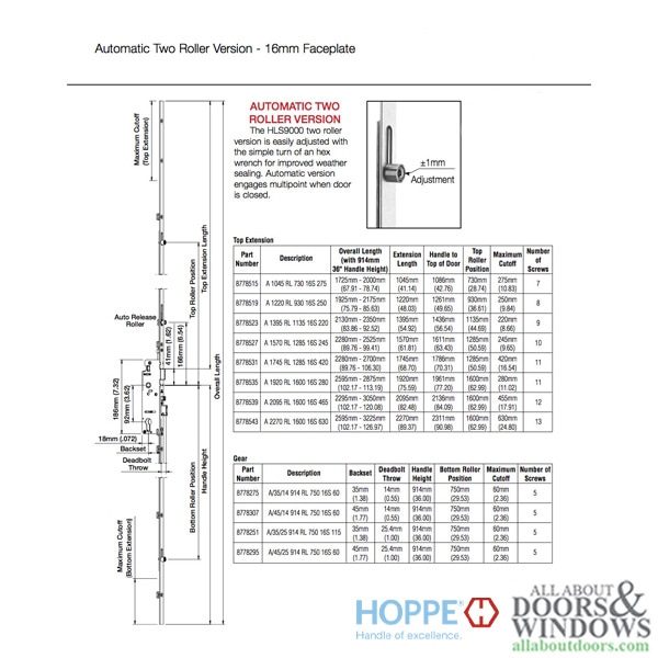 Hoppe Hinged Door Multipoint Lock Worksheet