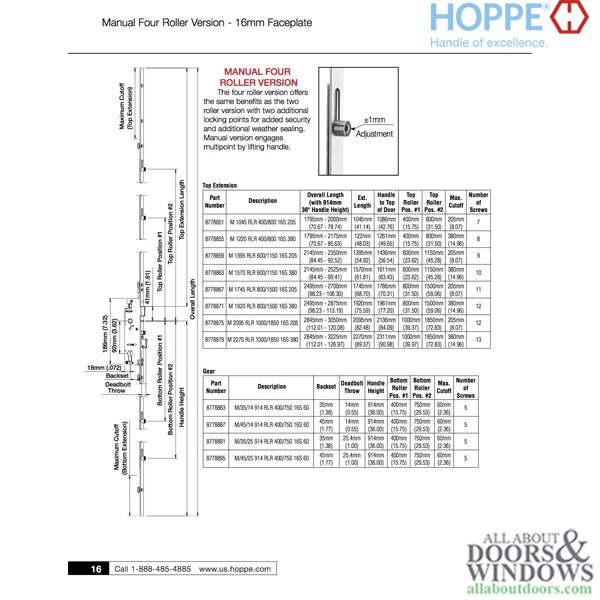 HOPPE HLS9000 Manual Locking Bottom Gear, Multipoint Lock Four Roller Version, Locking System