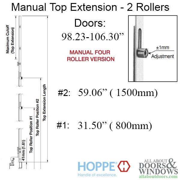 16mm Manual 4 Roller Top Extension, Rollers at 31.50 Inch and 59.06 Inch, 68.70