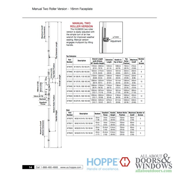 Hoppe HLS9000 Manual Two Roller Version, Bottom Gear for Active Door