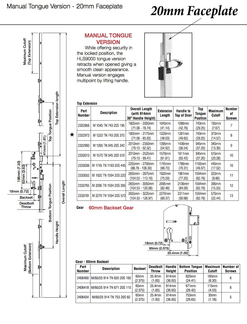20mm Manual 60/92 Gear, Tongue @ 29.65", 1" D/B, 36" HH