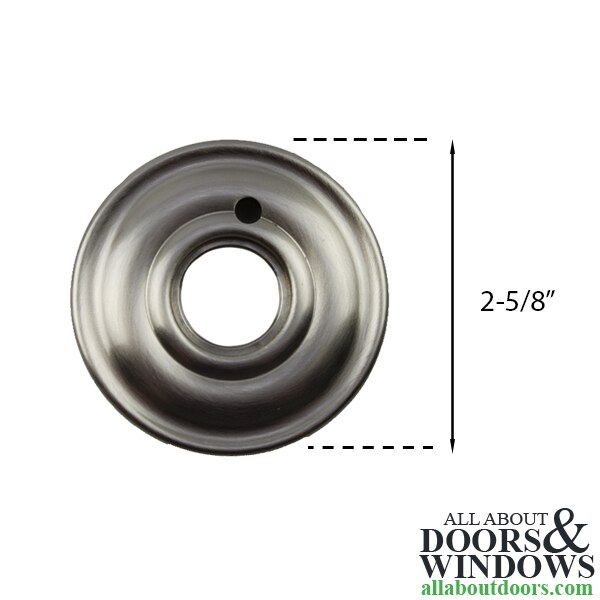 5148 Passage Rosette, 2-5/8" Diameter - Satin Nickel Part Number: 5148-150 Price: $34.99 Quantity discounts available QuantityPrice Quantity: Each (Pair)-+ Add to Cart DescriptionAdditional InformationSolid forged brass, polished and finished by handDesigned to conceal 2-1/8" pre-bored doorsPriced and sold in pairs.