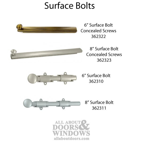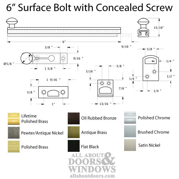 6" Concealed Screw Surface Bolt, Brass - Choose Finish