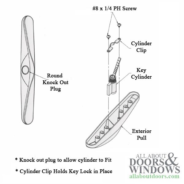 Andersen Tulsa Gliding Door handleset for 100 series Sliding Patio Door Set includes exterior handle, interior handle, lock lever, deadlock, plug, screws and instruction guide