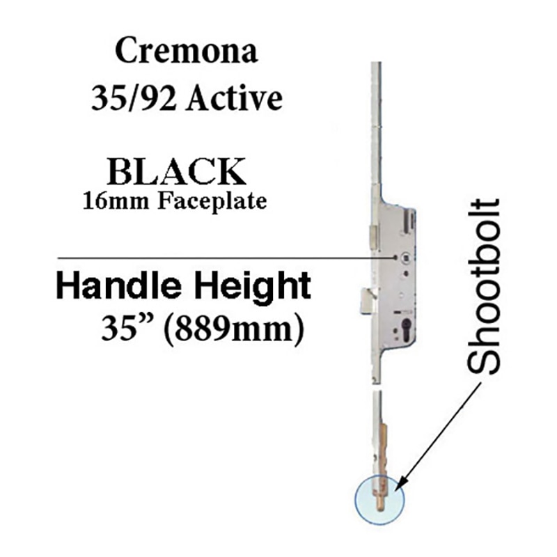 Cremona 35/92 Active Shootbolt, 3 Point lock - Black
