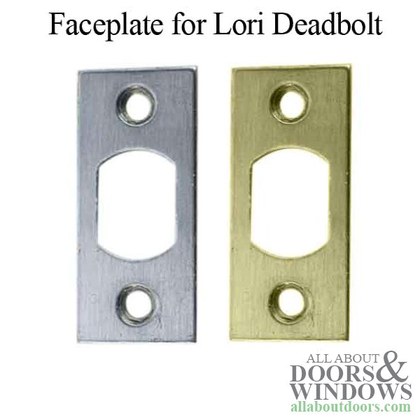 Faceplate for Lori Deadbolt Latch 1" x 2-1/4" - Choose Color Color : Brushed Chrome Polished Brass Part Number: 40526 Price: $5.00 Quantity discounts available QuantityPrice Quantity: Each-+ Add to Cart DescriptionAdditional InformationFaceplate for Lori Deadbolt Latch1" x 2-1/4"Color Options:Brushed Satin ChromePolished Brass