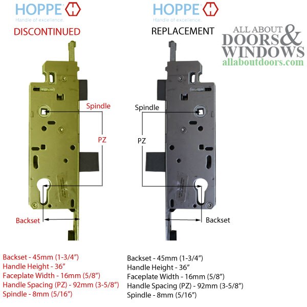 HOPPE 71 - 85-1/2 inch Tongue Multipoint Lock, 45mm backset Discontinued - See Replacement Options