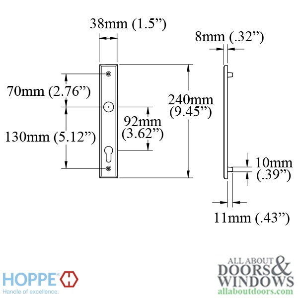 Replacement backplate to be used with HOPPE multipoint lock trim sets (handlesets)
