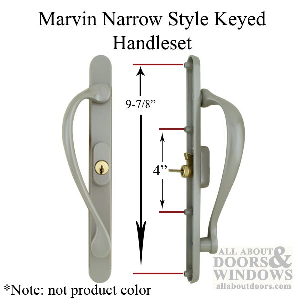 Marvin keyed sliding glass patio door trim, narrow plate and center thumb latch