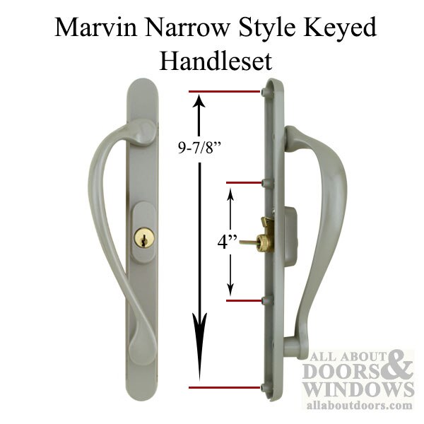 Marvin keyed sliding glass patio door trim, narrow plate and center thumb latch