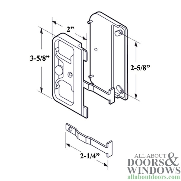 Contents: 1 Inside Pull, 1 Outside Pull, 1 Steel Latch, 1 Plastic Activator, 1 Pop Rivet