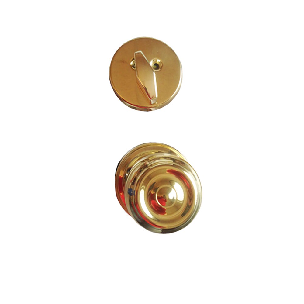 Includes: Phoenix-style knob in polished brass, interior thumb turn in polished brass, springlatch with radius (round) faceplate, deadbolt latch with radius (round) faceplate
