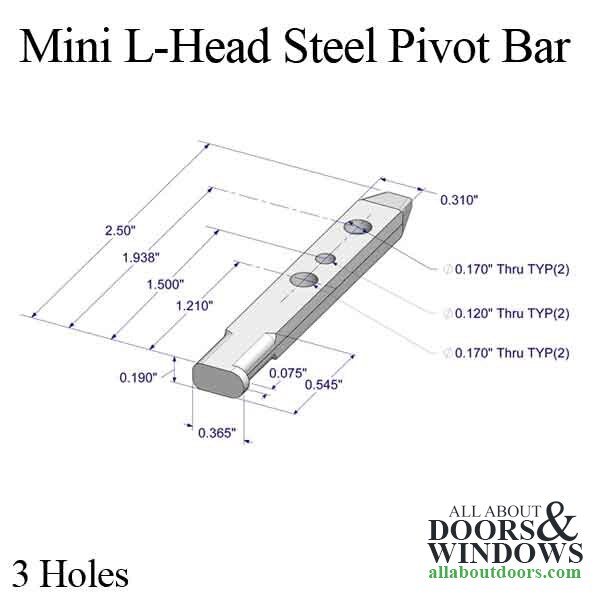 Pivot Bar, 2-1/2", 3 hole, Mini L-head, Zinc Die Cast