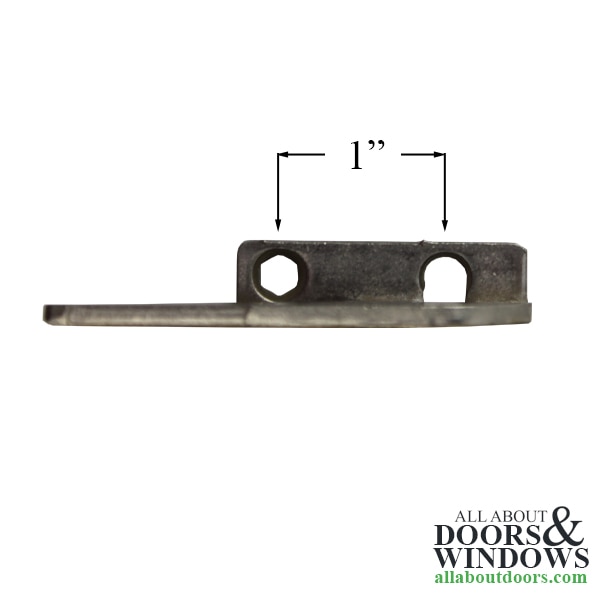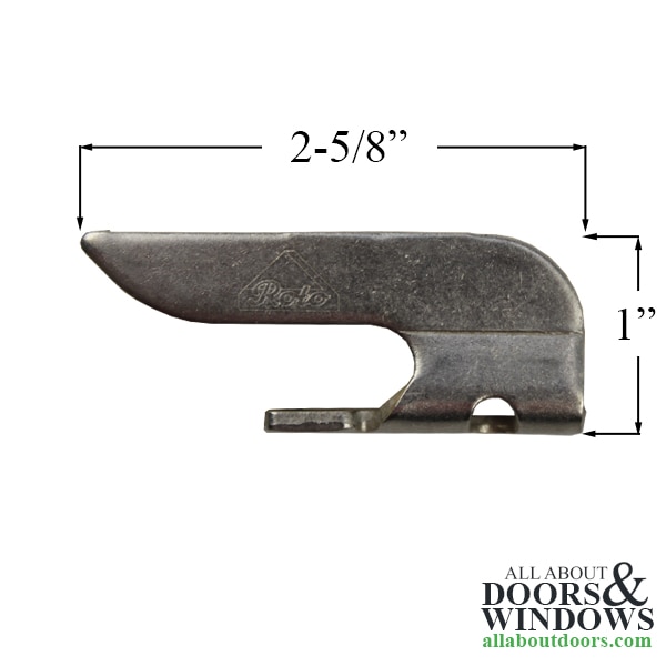 Pro Shield Sash Lock Hook, Flange Keeper, LH Material : E Gard Plated Stainless Steel Part Number: 552301 Price: $12.95 Quantity discounts available QuantityPrice Quantity: Each-+ Add to Cart DescriptionAdditional InformationWeather Shield Casement window Flange Keeper used with the Pro Shield windows