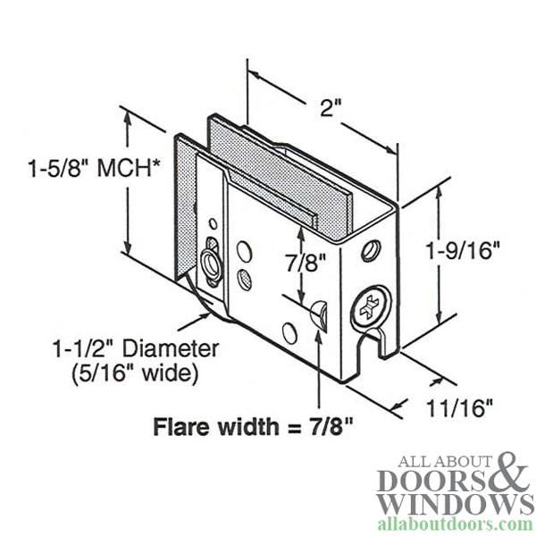 Center grooved steel ball bearing roller assembly for sliding patio door.