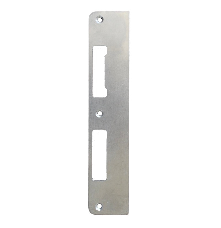 Strike Plate, 1.74 x 8.82" Curved Lip Latch / Deadbolt - Stainless Steel1-3/4" door, Curved Lip w/ Cylinder Holes8787735