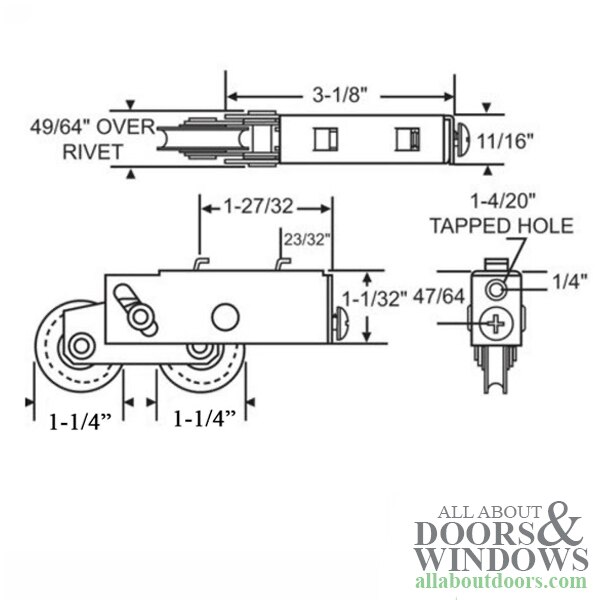 Sliding Patio Door Roller Assembly Steel Housing 1.25 Inch Steel Wheel Diameter