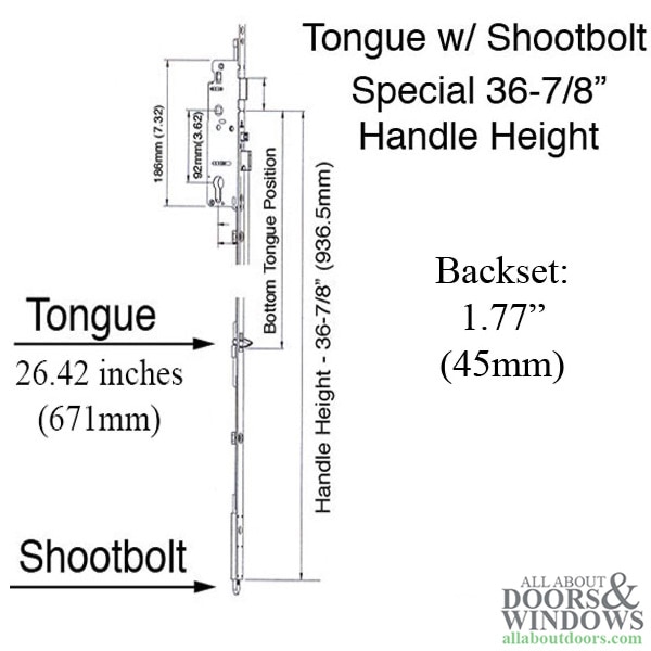Tongue / Shootbolt 45/92 Replacement Kit, 36-7/8 HH, 93-1/4" door