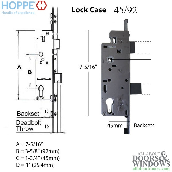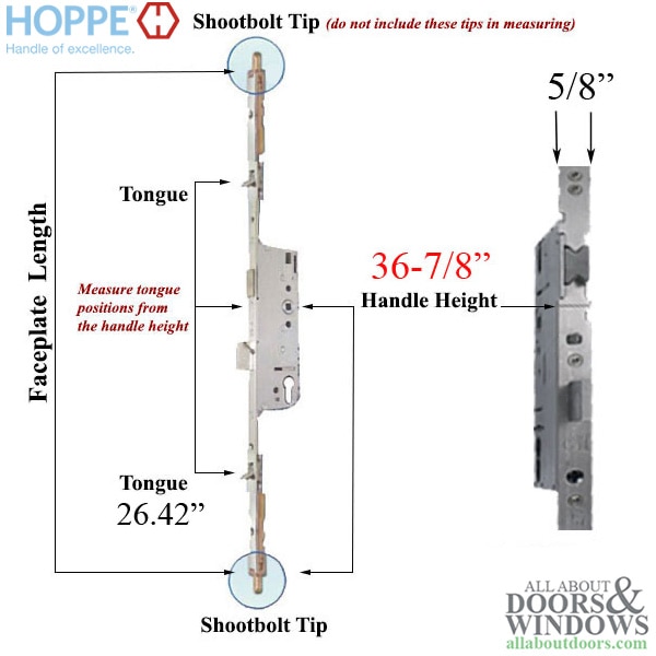HOPPE HLS9000 5 point lock, tongue with shootbolt, Multipoint lock for 93-1/4" tall door.
