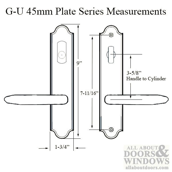 G-U Torino Handle & 45mm Plate, Active, Keyed w/ Thumbturn (Handle Below Cylinder) Choose Color